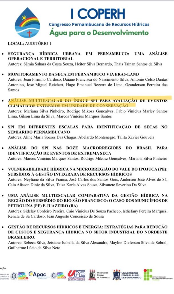 O Programa de Práticas de Preservação e Conservação do Bioma Caatinga e seus Brejos de Altitude, vinculado ao Grupo de Gestão Ambiental Avançada (GAMA/UFPE), participou do 1º Congresso Pernambucano de Recursos Hídricos, consolidando sua atuação no campo da educação ambiental e da gestão sustentável dos recursos hídricos no semiárido.