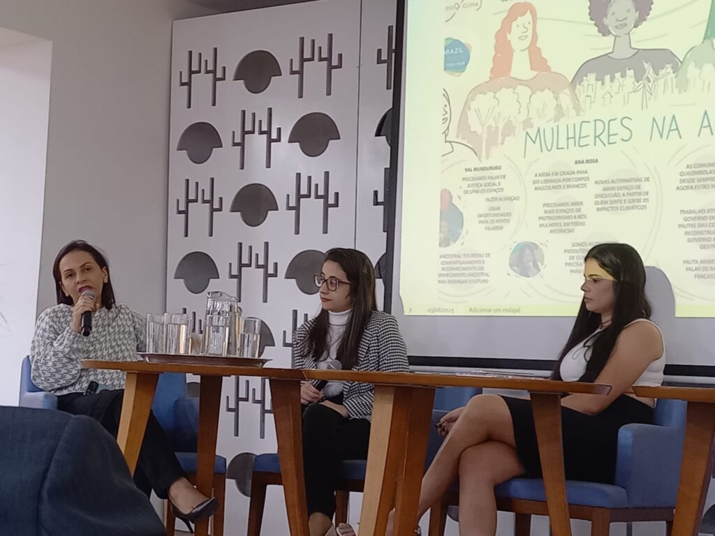 Durante a roda de conversa, Darkiany e Cássia compartilharam experiências e reflexões sobre a importância da atuação feminina em práticas e iniciativas voltadas à preservação ambiental, destacando projetos desenvolvidos no âmbito do GAMA e o protagonismo das mulheres em ações sustentáveis.