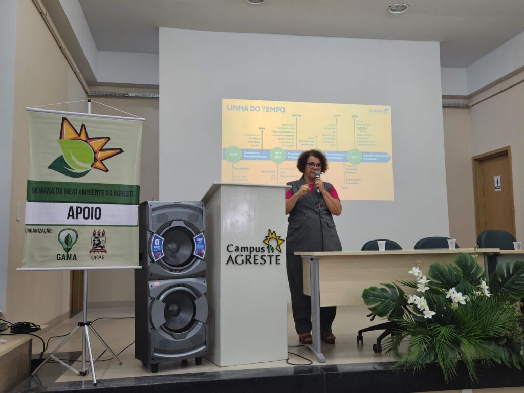 No dia 04 de junho, no auditório do Núcleo de Ciências da Vida (NCV) do campus Caruaru da UFPE, foi realizada a palestra “Gestão de Sistemas Ambientais Integrados – Case do Polo Industrial de Camaçari”, ministrada por Maiza Ferreira Santos, Coordenadora de Novos Negócios da CETREL. A atividade integrou a programação da XIII Semana do Meio Ambiente do Agreste, promovida pela CPRH (Agência Estadual de Meio Ambiente de Pernambuco).